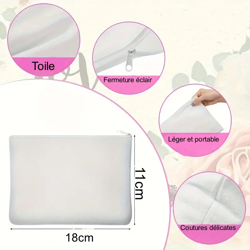 Fabriqués à partir de matériaux de haute qualité, ces sacs en toile sont agréables au toucher et conçus pour résister à une utilisation répétée tout en conservant leur charme. Lavables plusieurs fois sans altérer leur couleur ou leur texture, ils sont idéaux pour un usage quotidien. La fermeture éclair robuste assure un tirage fluide et sécurisé, vous permettant de transporter vos objets en toute tranquillité.